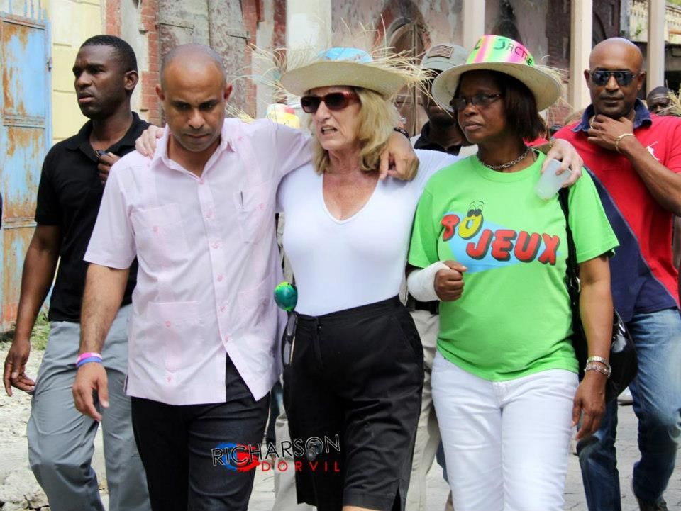 De gauche à droite, Premier ministre et ministre du Plan haïtien, Laurent Lamothe, Paméla White, ambassadrice des USA et une inconnue
